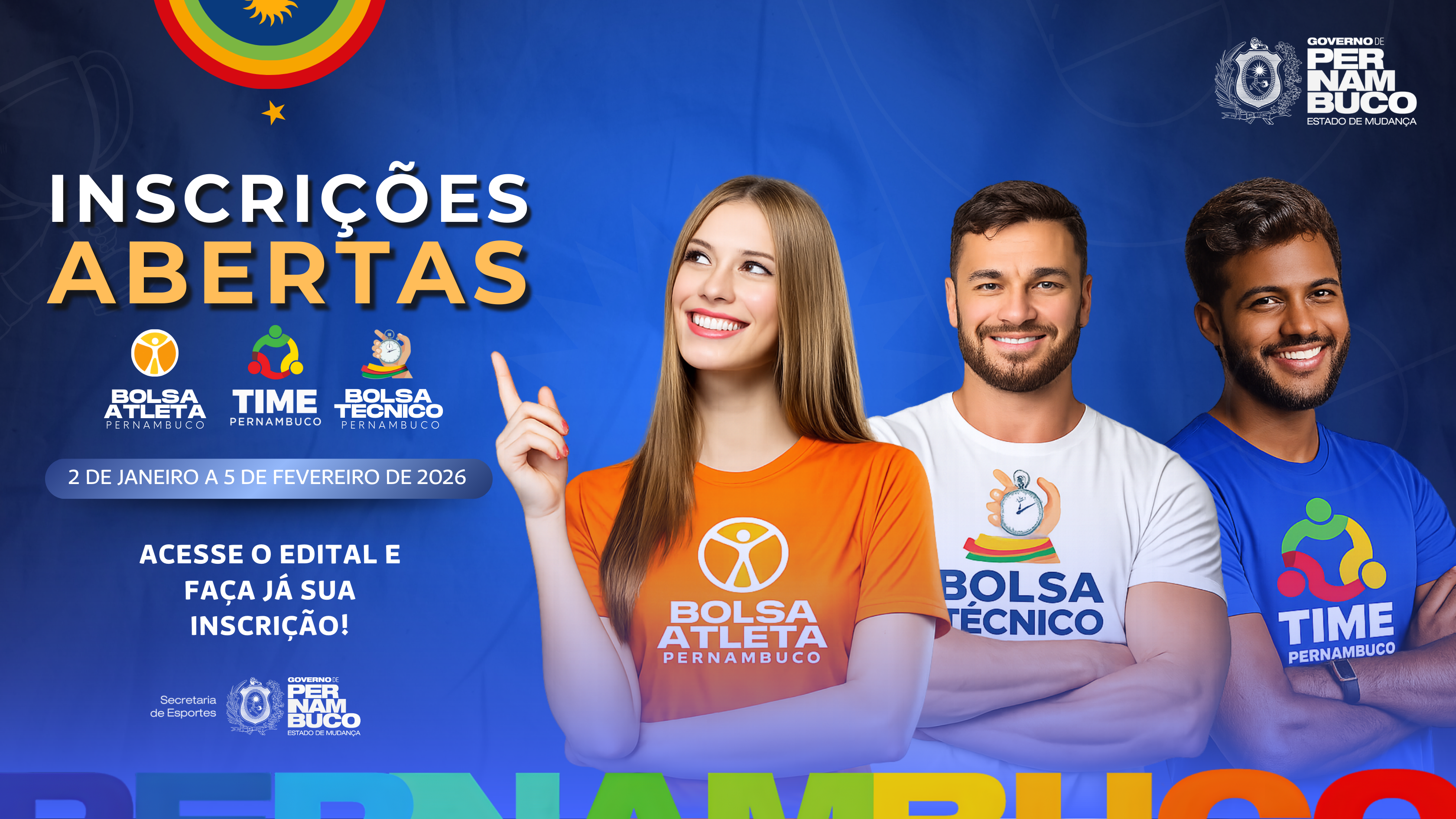 Secretaria de Esportes abre inscrições para Bolsa Atleta, Bolsa Técnico e Time Pernambuco 2026